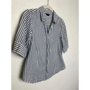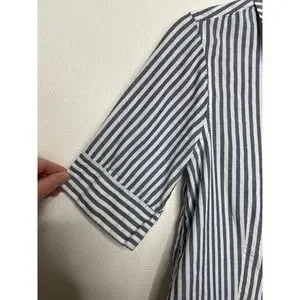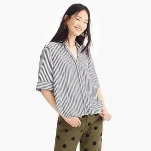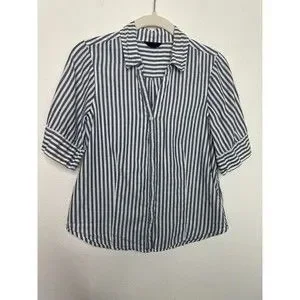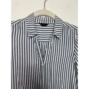 J.Crew XS Chambray Stripe Button Up Shirt Short Sleeve V-Neck Cotton Classicore