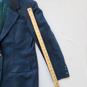 James Chen Wool Tailored Blazer Suit Jacket Blue Classic Luxury Retro Work
