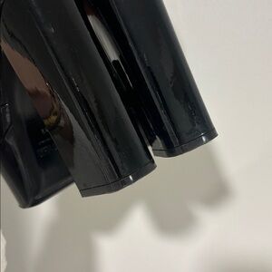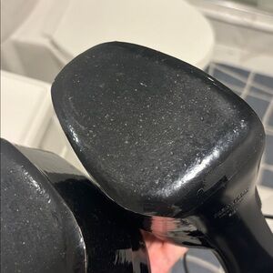 Sleek black platform heels. High block heel. Ankle strap with buckle closure. Glossy finish. They are awesome but too big for my thin feet with EU37.5