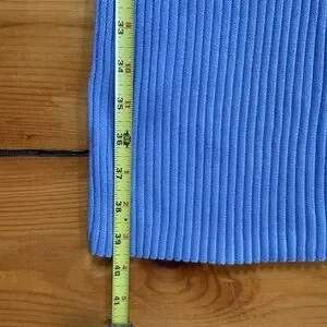 Stylish blue ribbed midi dress with adjustable spaghetti straps. Perfect for casual outings.