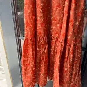 This stunning red maxi dress by Outerknown is perfect for a wedding guest or a night out. It features a flattering V-neckline and elegant flutter cap sleeves, with a smocked bodice that enhances its flowing silhouette. The lightweight fabric and vibrant color make it an ideal choice for warm weather occasions.