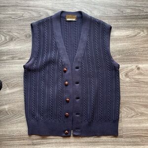 VTG Wool PENDLETON VEST Men's Navy Cable Knit Vest. LARGE