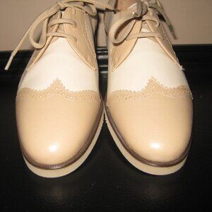 NWOT Salvatore Ferragamo Boutique SPECTATOR 2 Tone Wingtip Tie Loafer Ivory Taupe