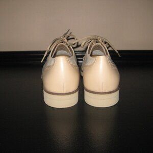 NWOT Ferragamo SPECTATOR 2 Tone Wingtip Tie Loafer Ivory Taupe Size 8 2A