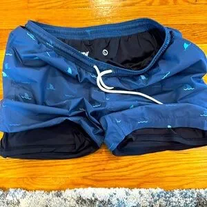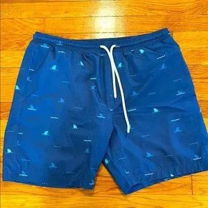 Dive into style with these Mugsy blue swim shorts featuring a playful whale pattern. Perfect for a day at the beach or pool. Made with comfortable built in boxer brief liner.