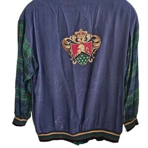 Vintage 90s Sunny Leigh Silk Button Up Multicolor Jacket Tartan Sleeves Small