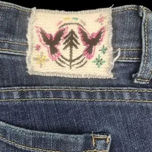 Women's straight-leg low-rise jeans in color indigo. Embroidered patch on the back. Taller Inseam.