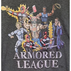 Elevate your superhero wardrobe with this Revolution Armored League top in size small. The crew neck, short-sleeved T-shirt is made of high-quality material that ensures durability and comfort