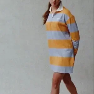 Zara Spalding stripe orange and blue long sleeves polo t-shirt dress NWT