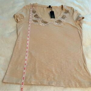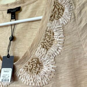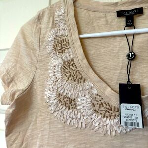 Talbots Top SZ xs T-shirt with Beaded and Ribbon Accent Cream/Tan Classic Tee