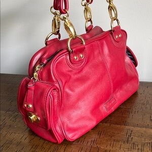 BCBGirls Red Leather Satchel Double Handled with Gold Accents Hand Bag