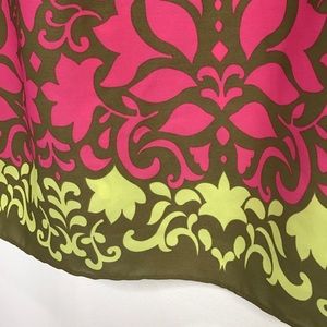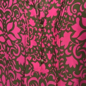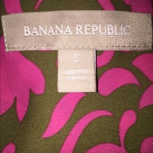 Banana Republic blouse pink, olive green and yellow, 4 front buttons. 3/4 sleeves with buttons.