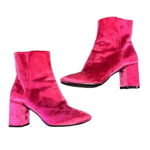 Vibrant pink ankle boots. Sleek and stylish design. Perfect for a bold statement.