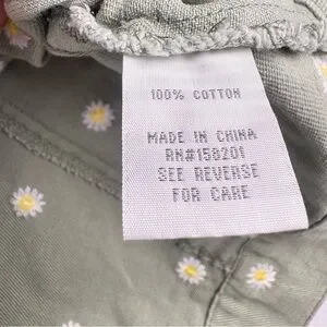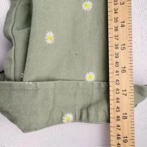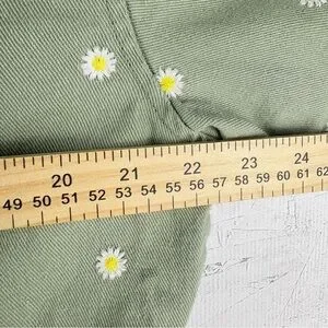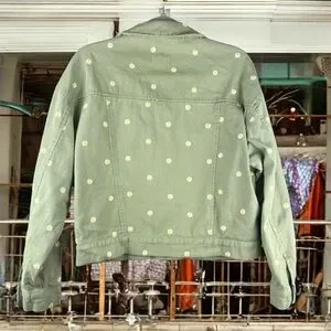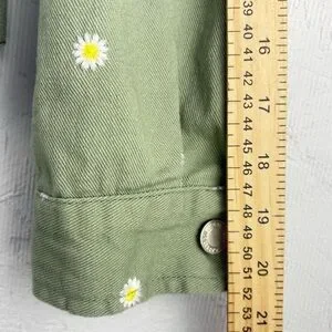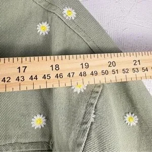Cali 1850 Olive Green Floral Embroidered Jean Trucker Jacket Cropped Daisies L
