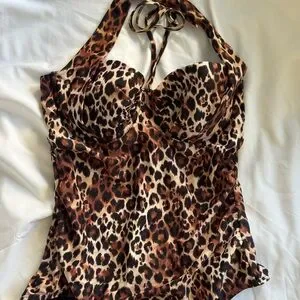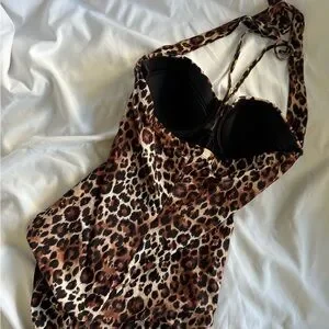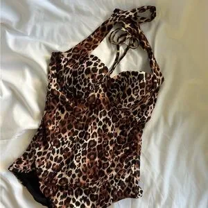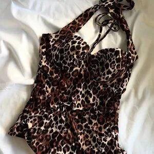 #LeopardSwimsuit #RetroSwimwear #PinupStyle #OnePieceSwimsuit #VintageSwim #HalterSwim #BombshellStyle #SummerGlam #Size8Swim #MediumSwimwear