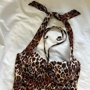 Leopard Print Halter Tie Vintage Style Swimsuit Padded Bust sz M/8