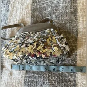 Never used. No sequins are missing. Gray satin hidden magnet closure. Two straps for two different ways to carry. Please see pictures for measurements, tags, details and condition. Feel free to ask me any questions. Thanks for checking out my closet 😘😘😘