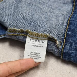 Torrid Women's Crop Button Jacket Denim 3/4 Sleeve Solid Cotton Blue Plus Size 4