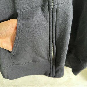 Comfy black zip-up hoodie with a little Minnie patch on the left front. Hanes - 100% cotton! Silver zipper - great condition!