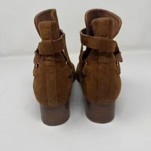Jeffrey Campbell x Free People Tan Brown Suede Ankle Boots Gold Buckle Size 9