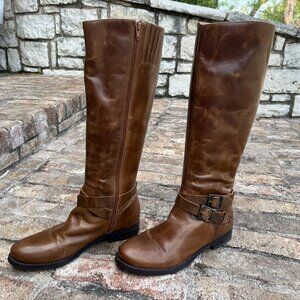 Matisse Boots Womens 8.5M Britain Tall Riding Brown Leather Zip Buckle Strap