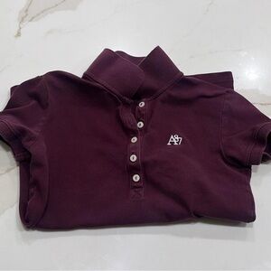 Classic burgundy polo with white buttons. Features A&7 logo. Ideal for everyday style.