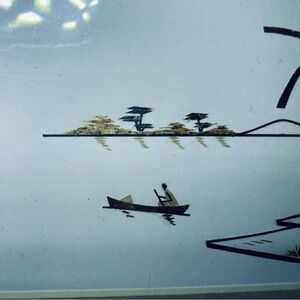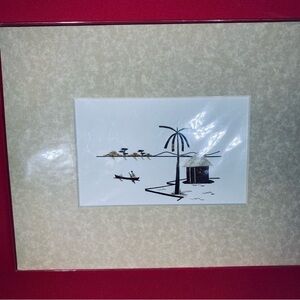 African Canoe and Hut Art Print with Cream Mat Framed Art