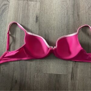 EUC Experience the perfect blend of comfort and style with this Victoria's Secret bra Featuring molded cups and adjustable straps, this bra offers a smooth fit under any outfit. The vibrant pink color and delicate center bow detail add a touch of elegance to your everyday essentials.