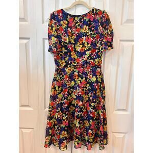 Julia Jordan short sleeve A-line dress, featuring a vibrant crepon textured floral print display, exudes a soft and chic look. With length reaching above the ankles, this dress features short sleeves with three-button detailing on the side, front button closures, and an A-line skirt for a fit and flare style. This effortless short sleeve A-line dress featuring a vibrant crepon textured floral print display, exudes a soft and chic look With length reaching above the ankles, this dress features short sleeves with three-button detailing on the side, front button closures, and an A-line skirt for a fit and flare style.