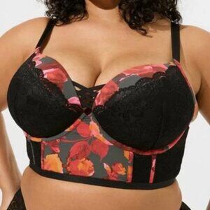 Torrid XO Plunge Push-Up Bra in Painted Retro Rose Floral I Size 40D