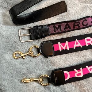 - silver chain for crossbody; thick logo strap for camera bag; logo belt strap (I think size xs-s) to wear as bum bag