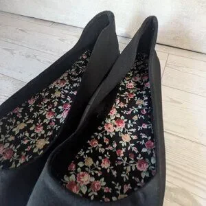 Black Flats with Floral design insole