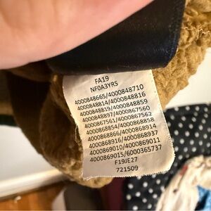 Cozy brown fleece pullover by The North Face. Features a green zipper and pocket detail.