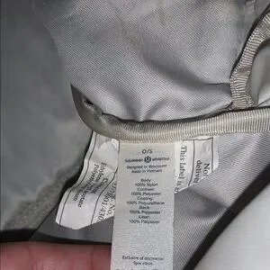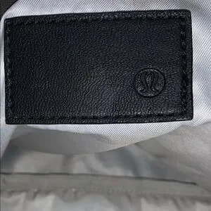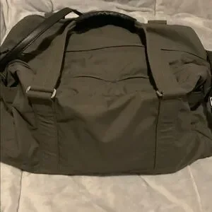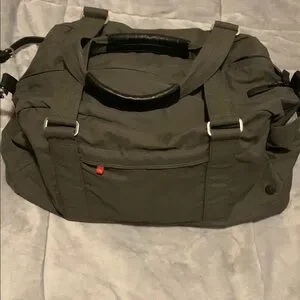 Lululemon green dufflebag vinyl with black leather handles 18in long