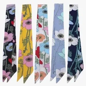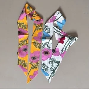 Branches and Floral Patterned Handbag Handle Ribbon Head Band Scarves Set Of Two