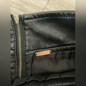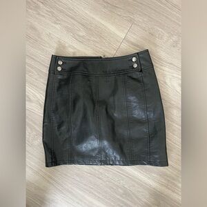 Add a touch of edgy sophistication to your wardrobe with this Free People faux leather black mini skirt in size 28. This pre-loved skirt is in excellent condition and is perfect for a night out or a casual day look. The sleek black color makes it easy to pair with any top and shoes, while the mini length adds a flirty vibe to your outfit. The Free People brand is known for its high-quality and trendy pieces, making this skirt a must-have for any fashionista's closet. Whether you dress it up with heels or keep it casual with sneakers, this mini skirt is sure to turn heads and make a statement wherever you go.