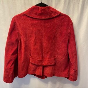 TRIA Red Leather Cropped Jacket Women’s Large Biker Moto Suede Coat Winter