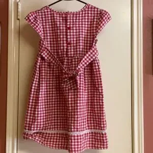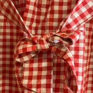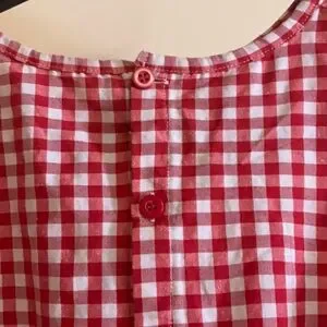 This charming sundress features a vibrant red and white gingham pattern, perfect for casual outings. The flutter cap sleeves and crew neck add a touch of elegance to its relaxed style. Made from a light, breathable fabric, it's ideal for warm weather wear.