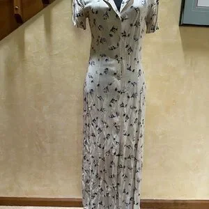 This elegant cream dress features a delicate floral pattern, perfect for any occasion. Its soft fabric and flattering fit make it a must-have addition to your wardrobe.