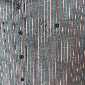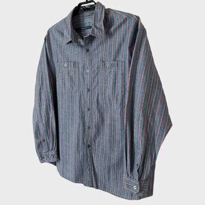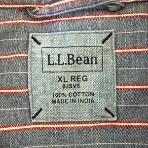 L.L. Bean Button-Up Long-Sleeve Striped Denim Shirt Blue Men's XL 100% Cotton