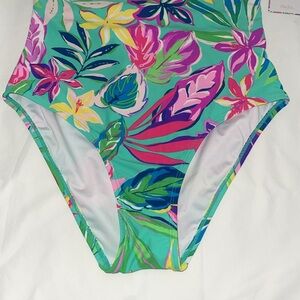 STELLA PARKER One Piece Bathing Suit Tropical Island Time Print Size Small Aqua