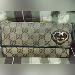 Gucci GG monogram Canvas lovely Heart long Wallet-Brown