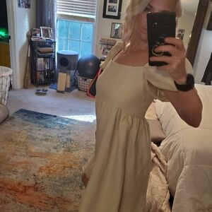 Show off your coquette style with this baby doll puff sleeve (can be worn off-shoulder) cream neutral dress. Perfect for any occasion, this dress is lined with side hidden zip and smock back.. offers an adorable chic and timeless look.