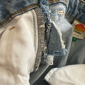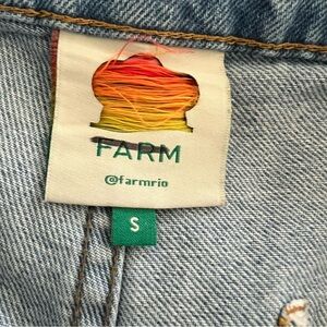 Farm Rio Embroidered Floral Wide-Leg Jeans Raw Hem Flower Bird Size Small Rigid Denim
