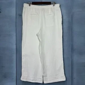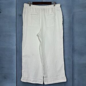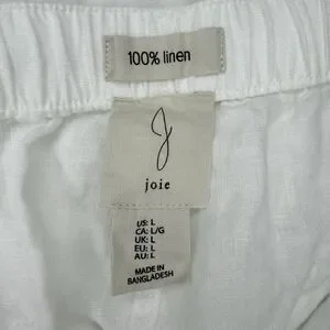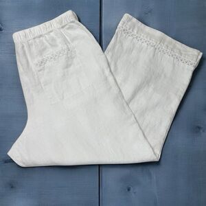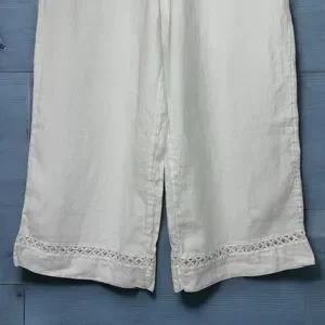 Joie Wide Leg 100% Linen Pants Large White Boho Elastic Waist Pull On Cropped