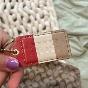 Discover the perfect blend of style and practicality with this Coach tote, showcasing the iconic 'C' monogram in brown with vibrant red leather accents. Ideal for everyday use, this spacious tote combines luxury with functionality, making it a must-have accessory.