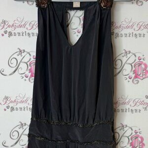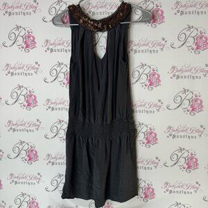 HYPE dress beaded embroidered neckline Black Sleeveless Dress with Lace Accents