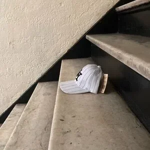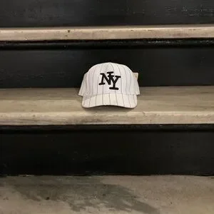 Stylish white pinstripe cap with bold NY logo. Perfect for casual wear.