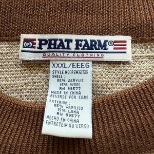 PHAT FARMS vintage sweater brown logo print XXXL oversize wool crewneck europe