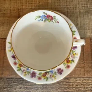 Royal Stafford Bone China Made in England Teacup and Saucer Floral Gold Trim